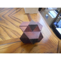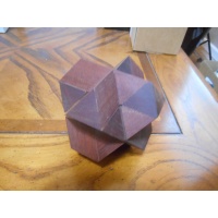 ITT - designed by James Allwright, , made by Puzzlewood about 2005 from Jarrah wood. The fit isn’t perfect, with some gaps between pieces. See the pic. Four pieces, interlocking.