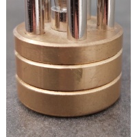 Not sure of the designer but he has definitely Professor Hoffman vibes! A tricky puzzle whose objective is to free the sphere. I am not the original buyer but the puzzle is in the same condition in which I bought it: "light wear and fanding surface". I took a picture of the only flaw worthy of a photo, the rest is in good condition. The puzzle is stored in a sealed box at 45-50% of humidity. It comes with original box and solution sheet.