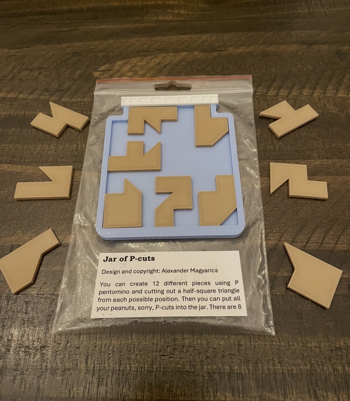 Goal: Pack all the pieces into the tray. 8 possible solutions.