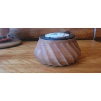 The Fibonacci puzzle is based on the Fibonacci sequence found in nature. The goal of this puzzle is to open the box. I uncovered a satisfying coincidence in nature that made the basis for the main Fibonacci mechanism. When I figured out a puzzle like this could exist, I knew I would eventually have to make it, and I'm very glad I did. This puzzle works very similar to the Pi puzzlebox I designed seven years ago although I'd like to think our execution is a little better this time around. The inlay spirals on top of the puzzle are Fibonacci spirals, otherwise known as golden spirals.