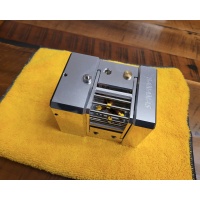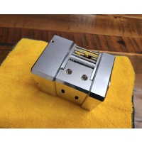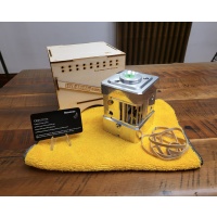 Very Rare Mechanical Puzzle from builder Jon Keegan. This one is Brand New, Never Solved. It is #156 of 225 made. It was taken out of the box and put into a display case, but has not been played with yet. There are some very minimal scuffs on the base seen in the photo. It comes with all of the original packaging - puzzle, wood box, metal objectives card, card stand, microfiber towel, and all the original rubber bands and protective foam/bubble wrap.