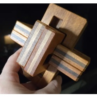The #1 has a unique level 19-11-4-2 solution and relatively small numbers of 84 assemblies. Juno believes that the puzzle has no possible rotational shortcuts although some pieces have room to rotate a little while assembling/disassembling. Of course, the puzzle is arduous, but some serious solvers will be able to assemble the puzzle not knowing the orientation of the pieces. Some of you might feel the similarity of the puzzle to his Grooved 6 Board Burr series when you play with it.
