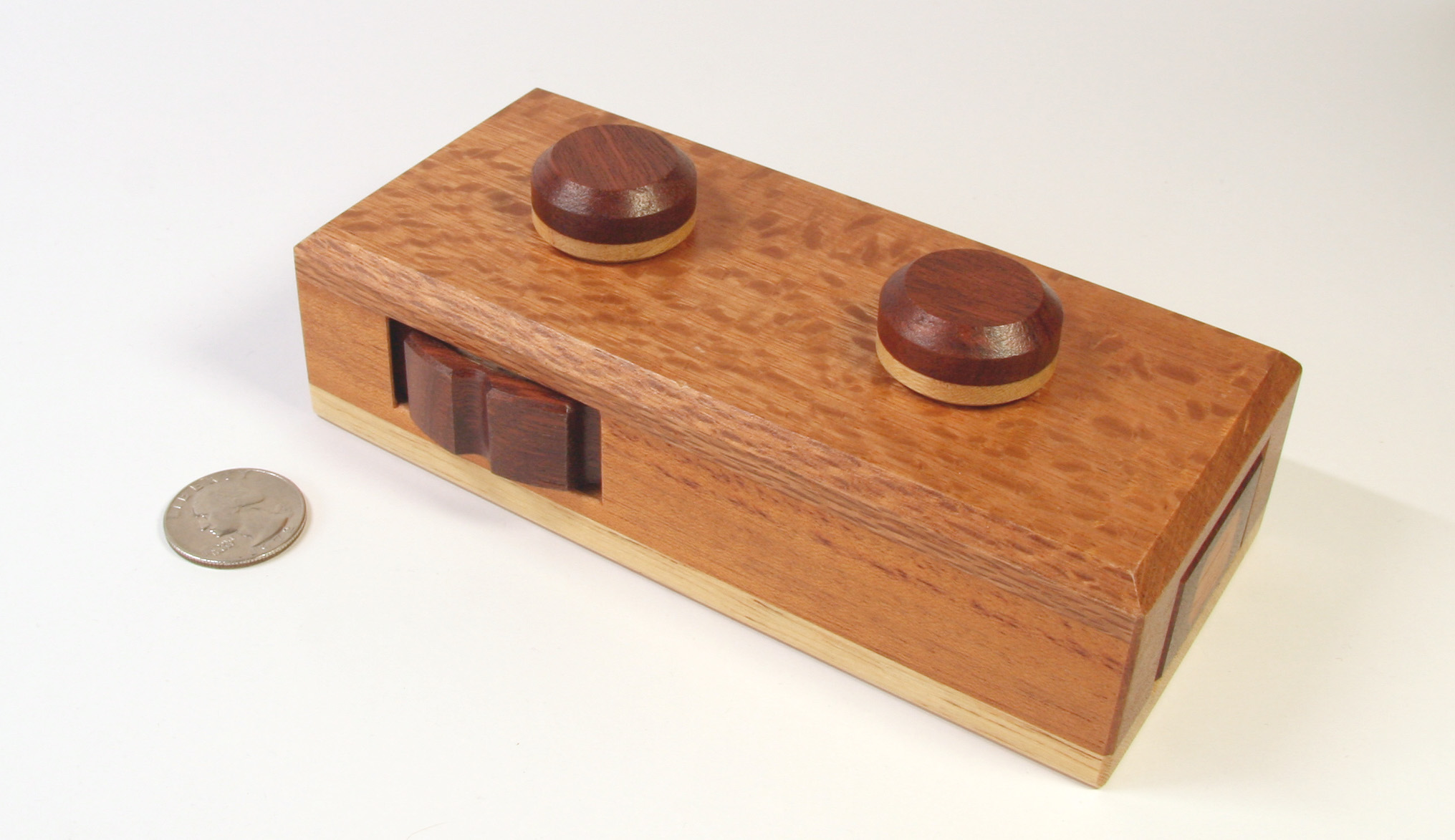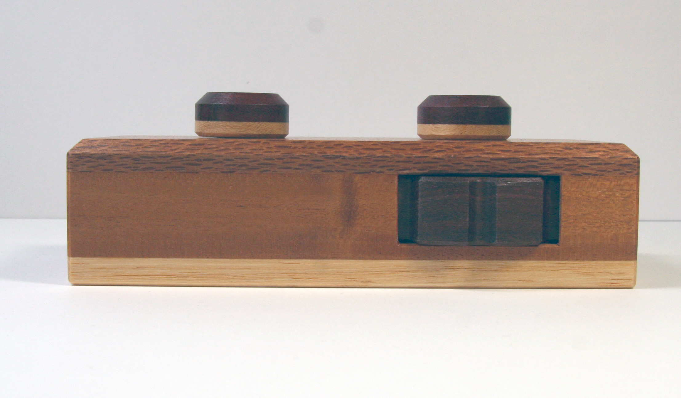 a burr set - puzzle box combo:  you have to find the instructions.made with cherry and ash. original description from Eric Fuller: The Penultimate Burr Set is something I've wanted to make for a very long time. I love burr puzzles, and the versitility and value of burr sets is unmatched. This set of 27 numbered pieces combines to make hundreds of puzzles, from fairly simple solid assemblies to extremely difficult higher level assemblies. Never before offered in six unit length, a new...