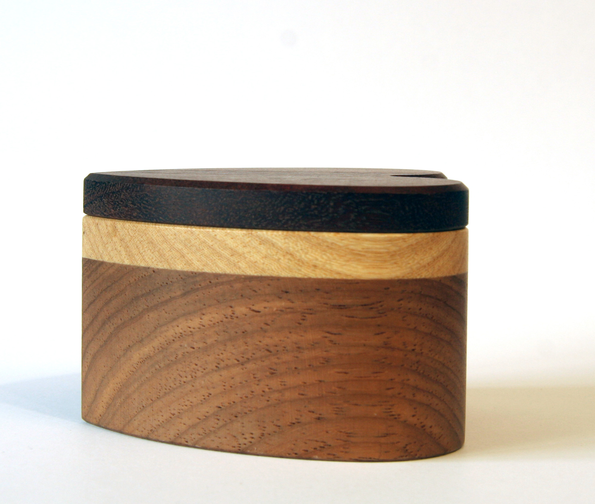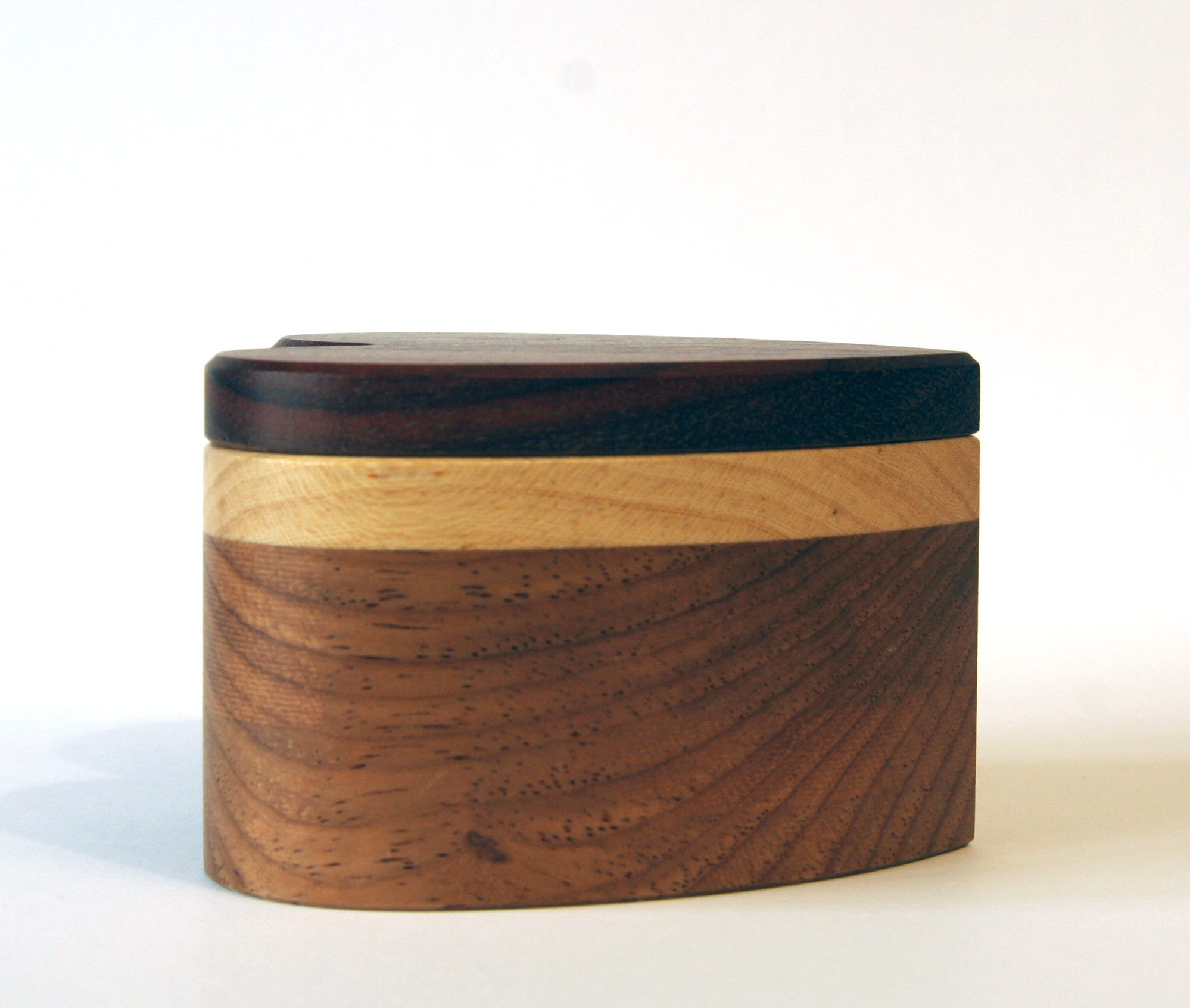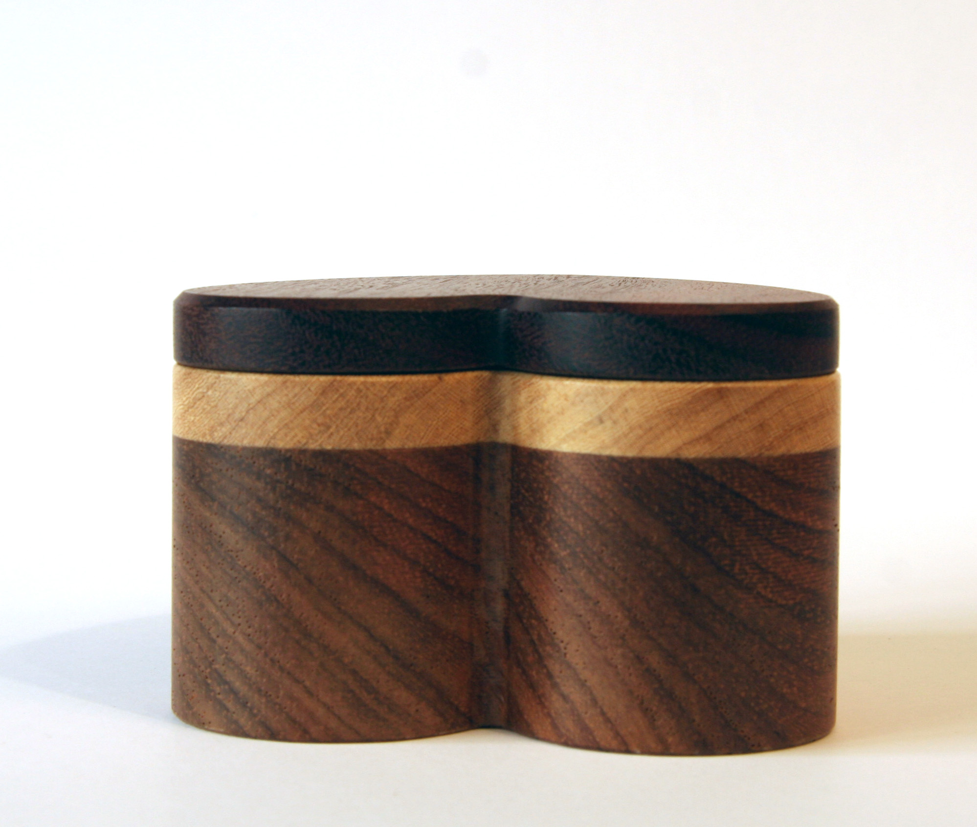 Bill Cutler's Visible Burr, made by Eric Fuller in 2015 out of canarywood, purpleheart, and padauk. Eric's (and Bill's)description: Another classic Cutler burr, I chose to interpret this one with more colorful woods than the usual cherry/walnut/maple. The size is also a bit smaller so it doesn't crowd your shelves. Here is what Bill has to say about the Visible Burr design: I like to design burrs which are difficult to take apart. This requires irregular not...