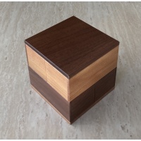 Durable, high quality Japanese cherry, walnut and monarch birch wood makes this Japanese Karakuri box a beautiful addition that will surely brighten up any coffee table or display shelf. This puzzle alone can be used to bring value to any puzzlers collection sitting on the shelf or on the table. A highly enjoyable solving experience and a highly clever mechanism inside this puzzle.