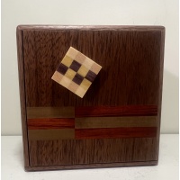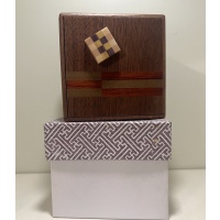 This puzzle functions perfectly but does have a minor scuff on one side (see picture). Here is the description from the Karakuri website: