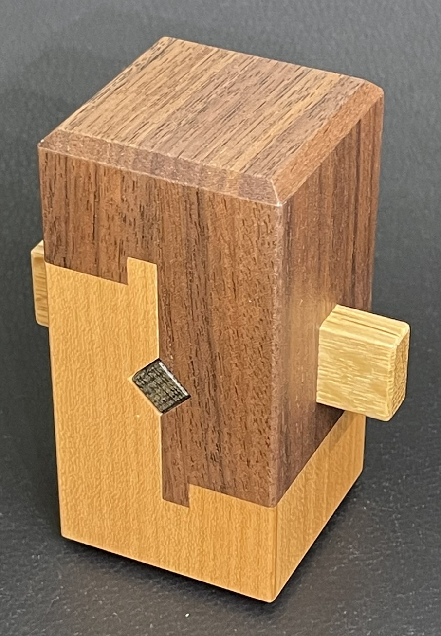 Per the Karakuri website:Nail clipperscraftsmanShou SugimotoITEMSS-12Created11/2020Size(box body)105×41×55mmSize(storage part)39×20×11mmMaterialmaple, cherry, walnutFacebookTwitter共有This work was designed as a Christmas present for 2020.I've always thought that the structure of a pair of nail clippers was interesting, so I made a karakuri box that makes use of it.Why don’t you try extending your nails to help you solve the mechanism of this Karakuri box?The puzzle is located in the Uni...