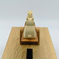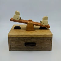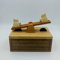 This is one of the karakuri design contest winner! Original idea by Takeshi Iijima and hand-crafted by Yoh Kakuda, this is a perfect mix of cuteness and fiddle! The twin brother bears just love to play see saw. Can you fully open the box?