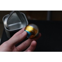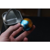 A take-apart metal puzzle sphere.
