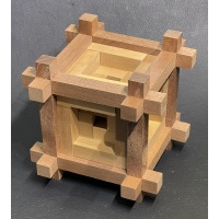Note: Puzzle is in great condition.  I have solved it and reset it several times (so satisfying!).  The packaging has a minor amount of damage on the lid (see last photo).From the Karakuri website:Covered ChimneycraftsmanHiroshi IwaharaITEMRF-16Created12/2006Size(box body)84×84×84mmSize(storage part)*****Materialkatsura, walnut, berry, etc.FacebookTwitter共有It was created as an Xmas Present for 2006.The theme of this work is the brick chimney that Santa Claus comes down. But, it is cover...