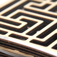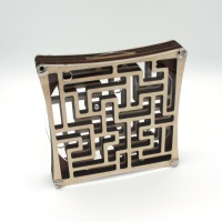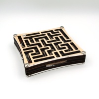 Double-level, double-sided labyrinth. Acrylic layer between two levels can rotate and the position of the passages can be changed. Go on!