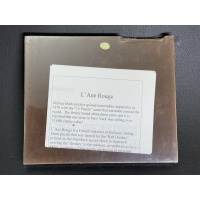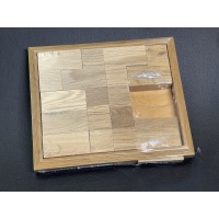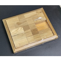This is a beautiful sliding block puzzle, still in its original shrinkwrap. One of the blocks is shorter than the rest, and therefore is the only one that can pass out of the opening in the frame. An information sheet is included (as can be seen in the second photo).