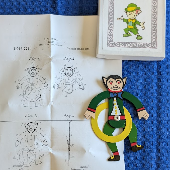 A very nicely hand made painted sheet metal reproduction of a 1912 patented puzzle design from Feeney.  Produced and exchanged by Allen at IPP 34 held in London, England in 2014.