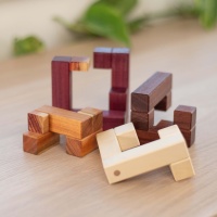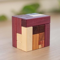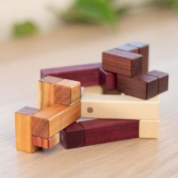 First off, the craftsmanship from Brian at Wood Wonders on this little puzzle is astounding. The fit of all the pieces is perfectly balanced for grip and movement, resulting in clicks and clacks as you solve it. And once all together, it feels like the puzzle has stored energy, each piece squeezing against other pieces in some kind of force harmony. The ability to craft parts that fit this well is amazing. I've heard that some TICs are looser fitted, but this one is snug in all the right ways.