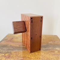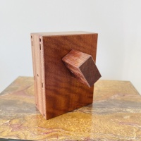 Lock Box is a sequential discovery puzzle box. Its simple appearance hides a very complex mechanical mechanism that requires multiple discoveries to open. No gravity moves, spinning, tapping, banging or force is necessary or allowed.