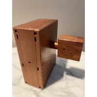 " Lock Box is a sequential discovery puzzle box. Its simple appearance hides a very complex mechanical mechanism that requires multiple discoveries to open. No gravity moves, spinning, tapping, banging or force is necessary or allowed. I think this is one of my best designs to date. Multiple steps and discoveries are required, with knowledge of the mechanism coming in stages until the box finally opens to reveal its prize.” |