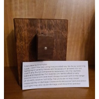 Lock Box is a sequential discovery puzzle box. Its simple appearance hides a very complex mechanical mechanism that requires multiple discoveries to open. No gravity moves, spinning, tapping, banging or force is necessary or allowed. I think this is one of my best designs to date. Multiple steps and discoveries are required, with knowledge of the mechanism coming in stages until the box finally opens to reveal its prize. We sourced a very rare plank of Claro Walnut for this edition of Lock Box. Claro walnut trees are a blend of species, created by grafting an English walnut to either black walnut or a California walnut. Claro is a Spanish word meaning clear or bright, and this is used to identify the wood cut from the bole of walnut orchard trees. This is also our first puzzle that incorporates precision-milled metal components combined with fine woodworking. The shining aluminum key shaft really stands out against the intricate visual texture of the wood. |