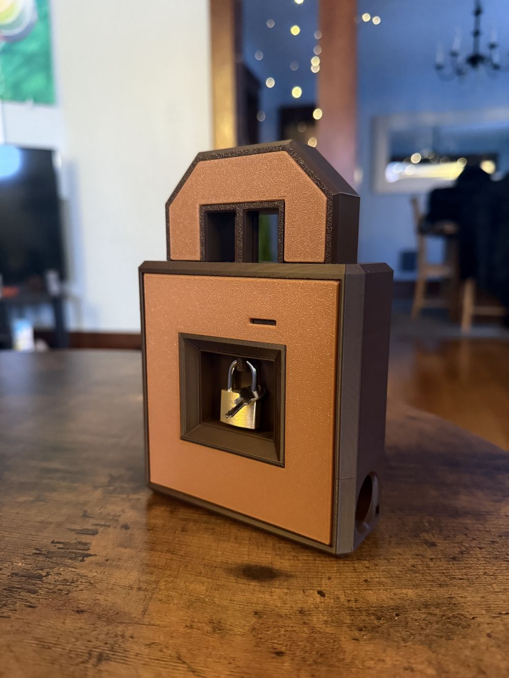 "Locked Lock" started with a simple idea concept of "Hmm... what if you had to open a lock, but it was locked shut by another smaller lock?" With this concept as the foundation, I got to work incorporating some mechanisms I had been working on for awhile. Slowly it all came together, resulting in a very challenging sequential discovery puzzle. Everyone counts steps differently so it's difficult to know the exact number, but I counted around 30 steps to reach the goal - keep in mind that some of these steps are straightforward while others may hold you back for a long time, so I exercise caution when using the amount of steps to rate a puzzle as good/bad or easy/hard. This puzzle is very challenging.
