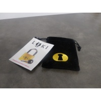 A really tricky puzzle lock. I did asked for a little hint in order to solve it! I am the original buyer and the puzzle is in excellent condition. It comes with original bag and instruction sheet. More information about it here: Puzzlocks