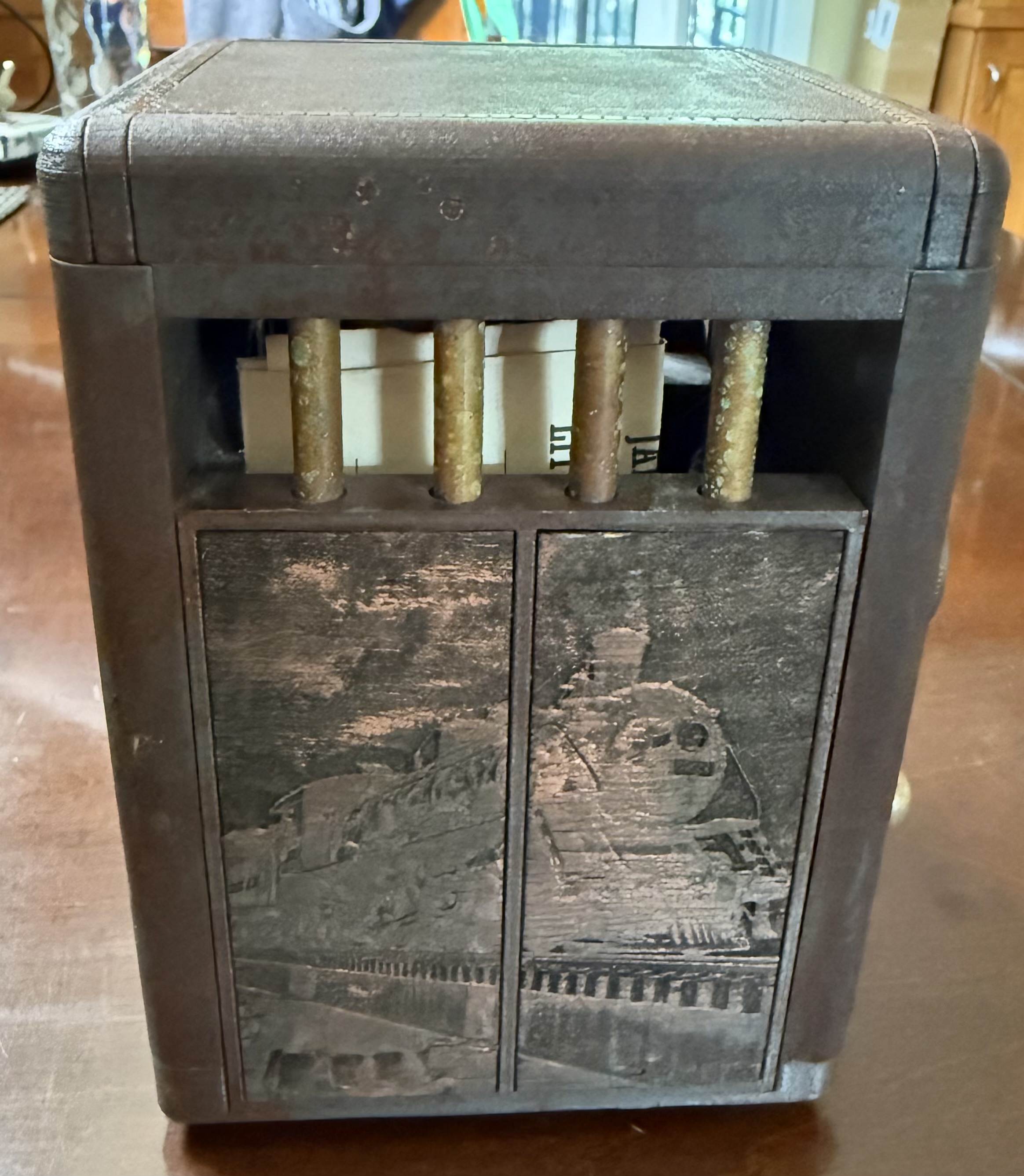 One of the best 3D printed puzzles and voted the best puzzle of 2022 by Chris Ramsay.  The printed plastic elements are infused with metal to create a real rust, for an authentic vintage feel. There are also real brass parts: the bars on the windows and the handle for opening the safe.  The Vault has a significant weight to it