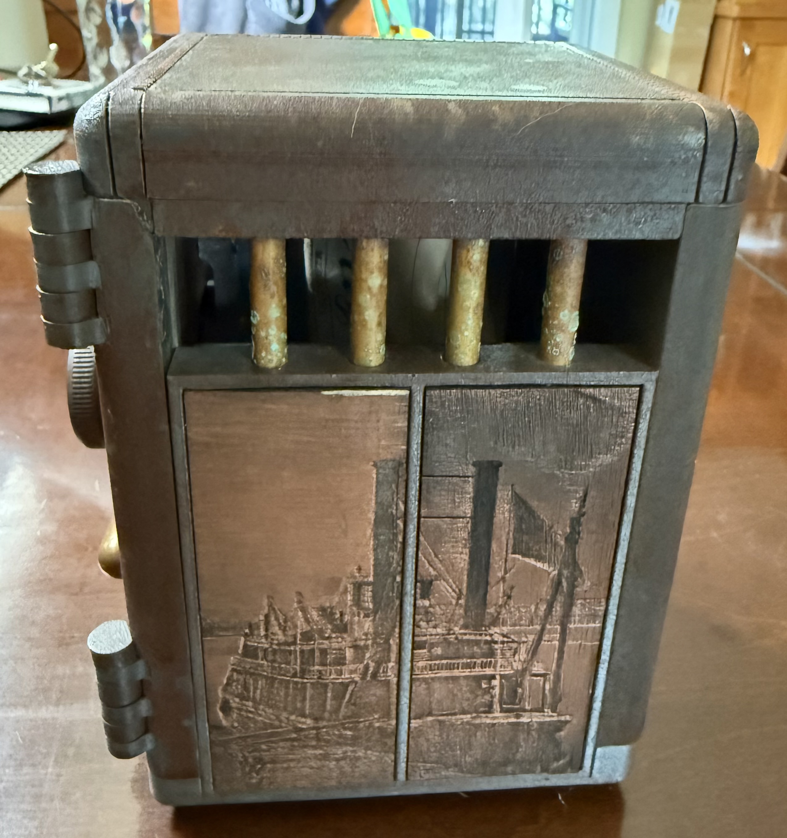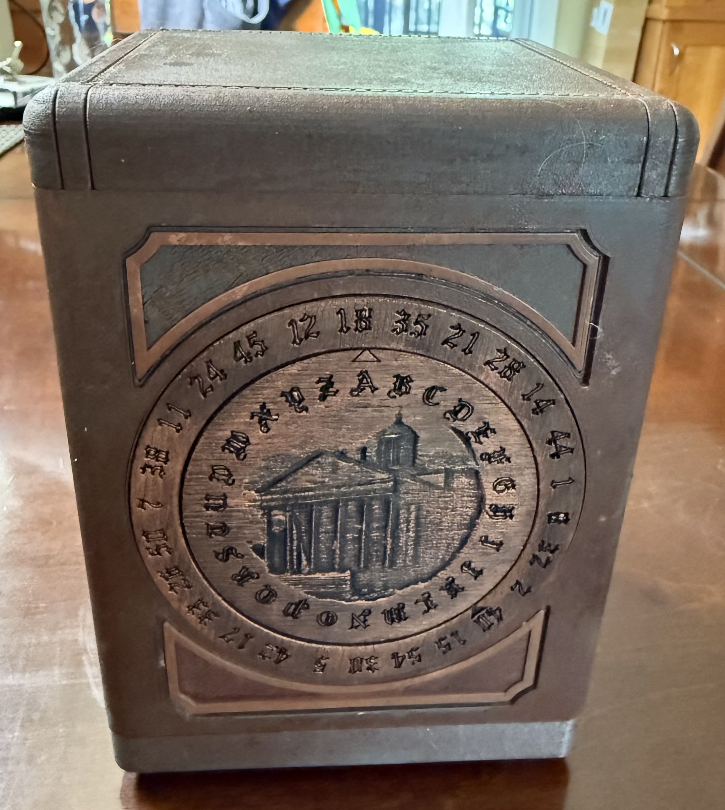 "The Lost Vault box is beginner level puzzle box that uses riddles, combinations, and secret moves to safe guard the cherished belongings of the infamous outlaw Jesse James!