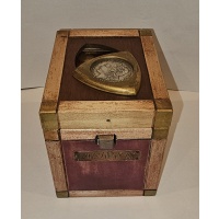 The box is made of recycled wood (ruins of a 19th century hotel); hand finished with brass accents..Outside dimensions 5”x4”x4”, with an inside dimensions of 4”x3”x2.5”