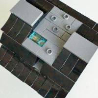 This challenging puzzle box is assembled from individual Lego parts and uses no glue but does have modified Lego pieces for the sliding mechanisms.