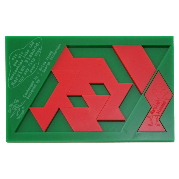You’re given a tray with a diamond-shaped recess. There are 5 pieces of the puzzle already in it. Plus there is one piece outside the diamond frame. But there seems plenty of space to fit the extra piece into the frame so how can the puzzle be so difficult?