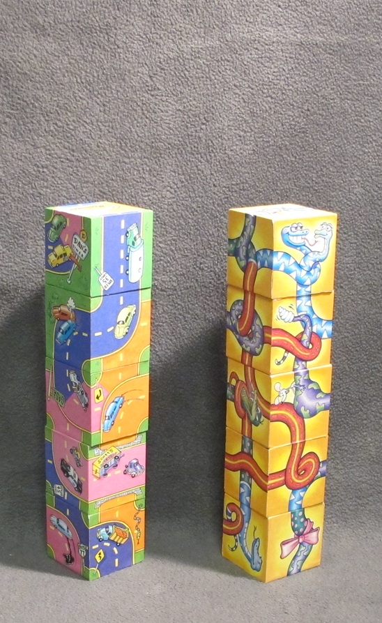 two copies of this challenging puzzle with either cars (roads) or snakes to be connected.