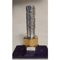 This is a heavy nut & bolt, and my first Roger D. puzzle. The obviouse goal is to get the nut off the bolt. I learned that the "+" in the title means removing the nut is not your only task. After removing the nut there's something else to discover/find/solve. I wouldn't know because after a year plus of attemps I wasn't even able to free the nut. This is a difficult puzzle and beyond my experience level.