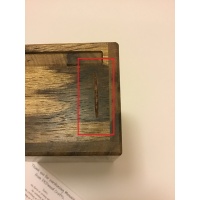 'Scratch/Dent' details: The most notable imperfection is a roughly one inch long and 1-2mm wide trough, a wormhole that happens to lay along the surface of the wood. There are also 4 other very tiny wormhole divots. Still beautiful, I think the small marks give the piece personality!