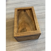 Hidden tricks and tools will keep you guessing as you solve your way through our newest sequential discovery puzzle box. Things are not always what they seem.  Menace may fool you into thinking it is simple when in fact you have only just begun its multi-step journey. You will understand how menacing this box’s secrets are when you have found the secret prize hidden within its final compartment. Menace’s sleek aesthetic uses a single exotic wood for a clean, simple appearance that belies the complexity of the mechanisms hidden within its 5.25” x 3.5” x 2.5” frame. Menace will be available in three different woods: Quarter Sawn Shedua, Flat Sawn Shedua and Black Limba.