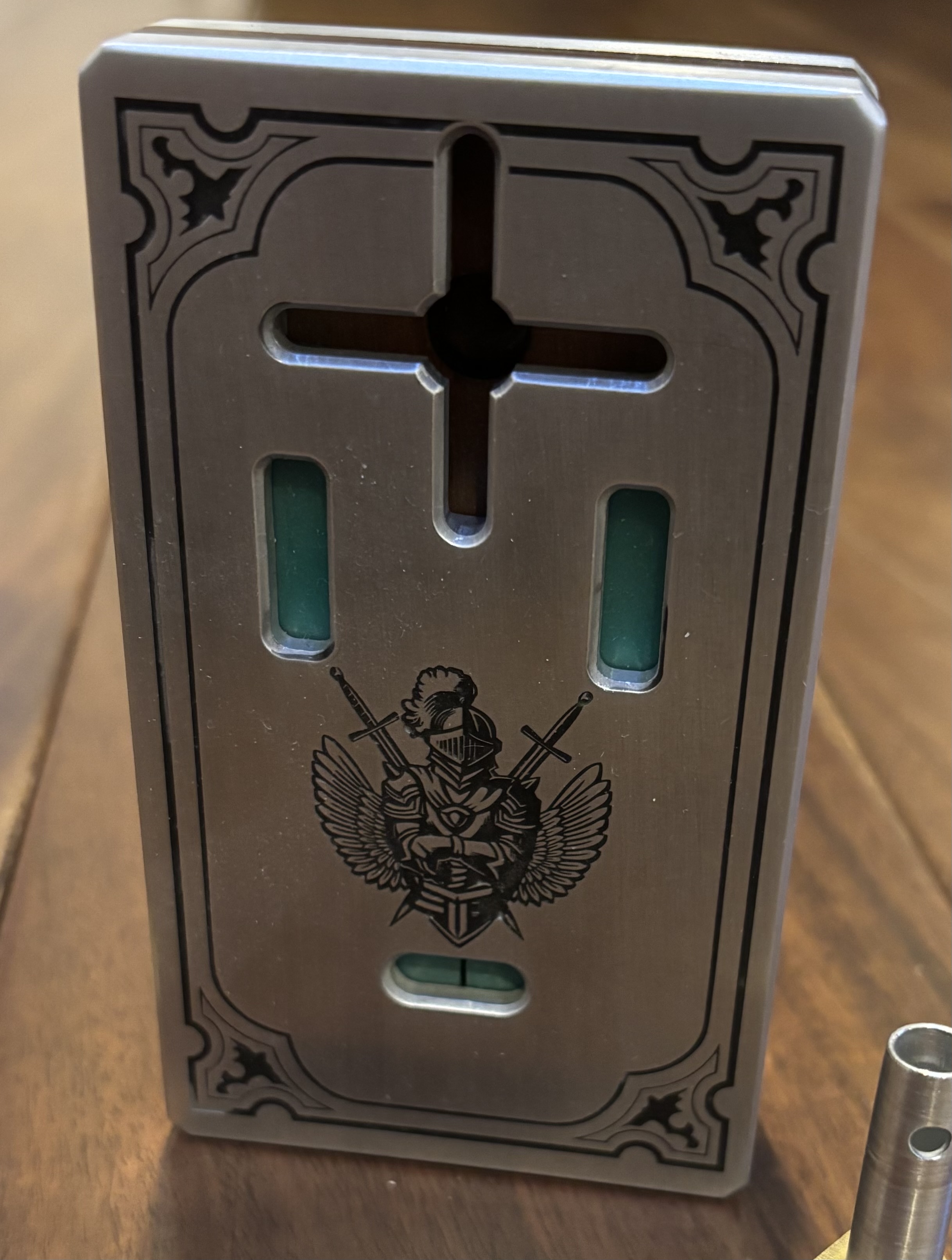 One of four metal templar locks created by BeardsWoodShop. Of the four boxes made, each had a unique knight engraved into the box. That makes this puzzle a 1 of 1. I am the original owner. The puzzle is in perfect condition.