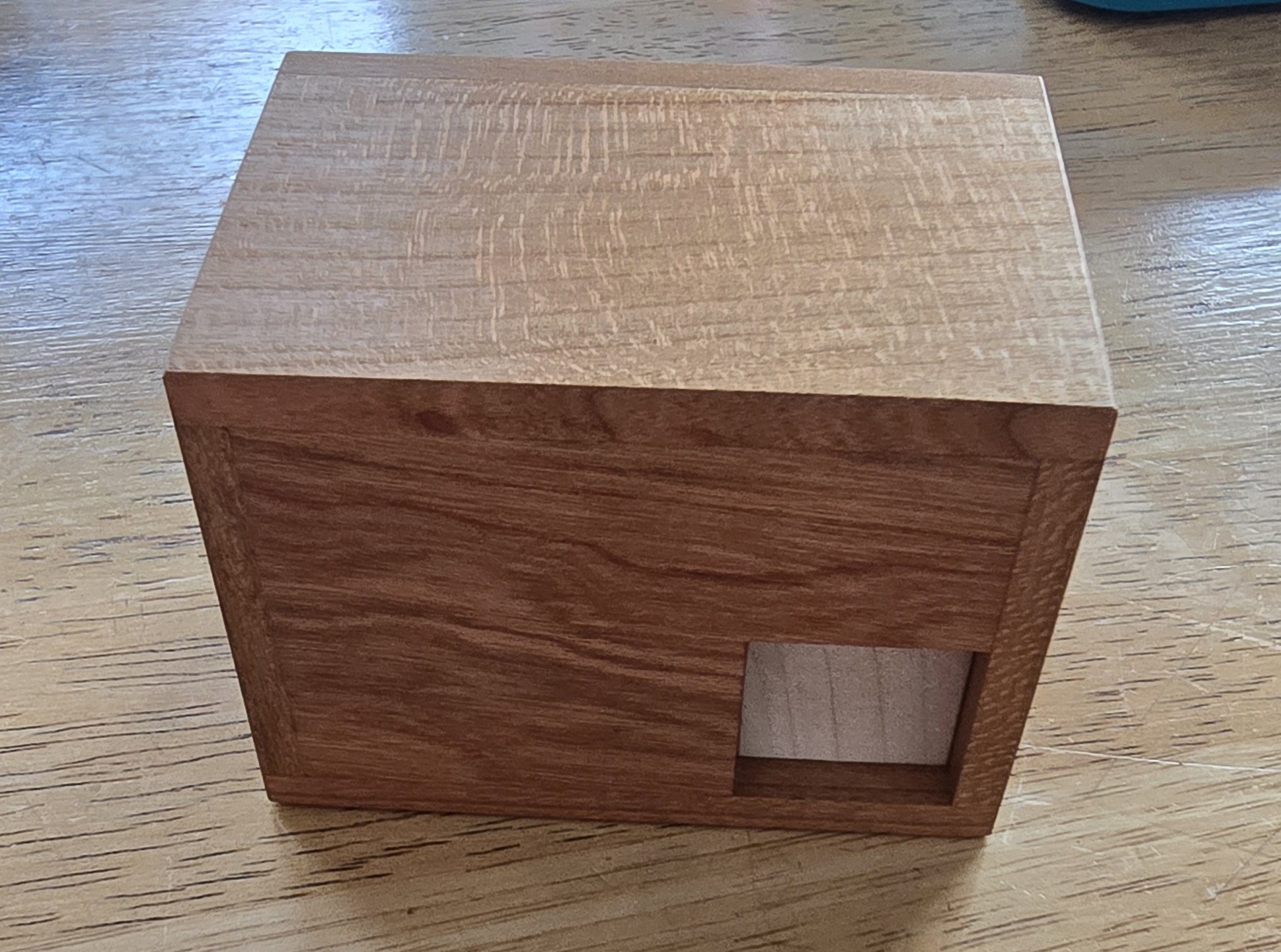 The follow up puzzle to Minima Smiley crafted with cherry and padauk. The puzzle was designed by Frederic Boucher and produced by Pelikan. Compared to its predecessor it has a lot more to offer in terms of puzzling. This was a fun one to figure out.