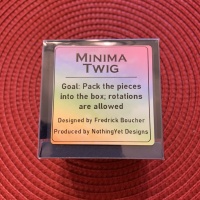 "Minima Twig" is a restricted packing puzzle designed by Frederic Boucher and produced by NothingYetDesigns.