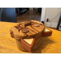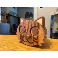The object of the puzzle is to put a bell on the cat. In addition, the final cavity contains a small figure of a Japanese traditional sweet in the shape of a sea bream that is called Taiyaki. Many SD puzzle lovers will think that the puzzle is easier than our former products Sequential Discovery Cubed Box and Slammed Car. A great deal of time has been spent to shape and finish the figurative puzzle pieces. Therefore, the price to solving time ratio is higher than many of our other products. Counting every single movement, there are quite a few steps to solve this puzzle though.