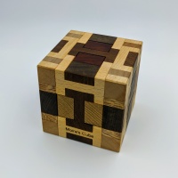 A level 43.6 cube burr by Alfons Eyckmans, wonderfully crafted using many vibrant exotic woods.