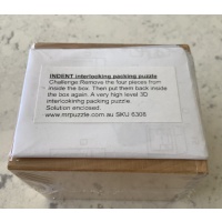 A very high level 3D interlocking packing puzzle. Taking them out will be difficult but getting them back inside the box is another level of difficulty altogether. Lining up the dimple in the top of the blocks to form a full circle will help you know you’ve reassembled the puzzle correctlyShipping extra.