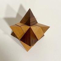This is a beautiful puzzle what looks like two pyramids inside of each other, it was a little difficult to photograph. Not sure if this puzzle was put together correctly or not it does seem like there’s some spacing in areas that it seems tighter than others found as is, I didn’t dare taking this one apart it seems really difficult.