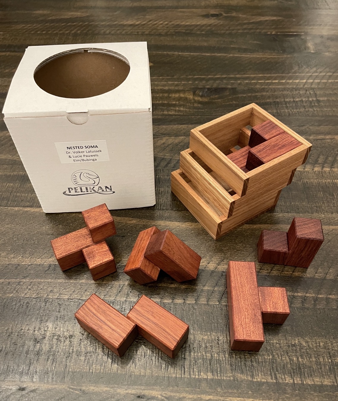 Designed by Dr Volker Latussek and crafted by Pelikan.Goal: Create an arrangement within the box and attempt to slide the pieces out the frame’s opening without picking them up.Woods are Purpleheart, Padauk, Mahagony, Acacia Perfect Condition. Comes from a smoke free home and properly stored.Will package with a collector in mind for shipping.*Buyer pays shipping costs and will be added at end of auction. I accept Friends and Family and Goods and Services payments. I understand the importance...