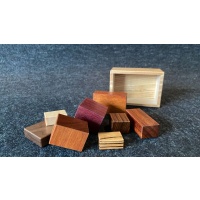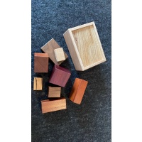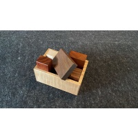 New Melting Block by John Rausch is an improved version of Tom Obeirne's original Melting Block puzzle. This paradoxical 3-D packing puzzle has two unique assemblies, one using seven pieces and the other using all eight. There are two possible solutions for each assembly.