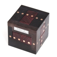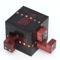 Woods : ebony (cage), dark padauk (pieces). This kind of padauk is heavier and darker than the regular red padauk. It does not produce any white dust.
