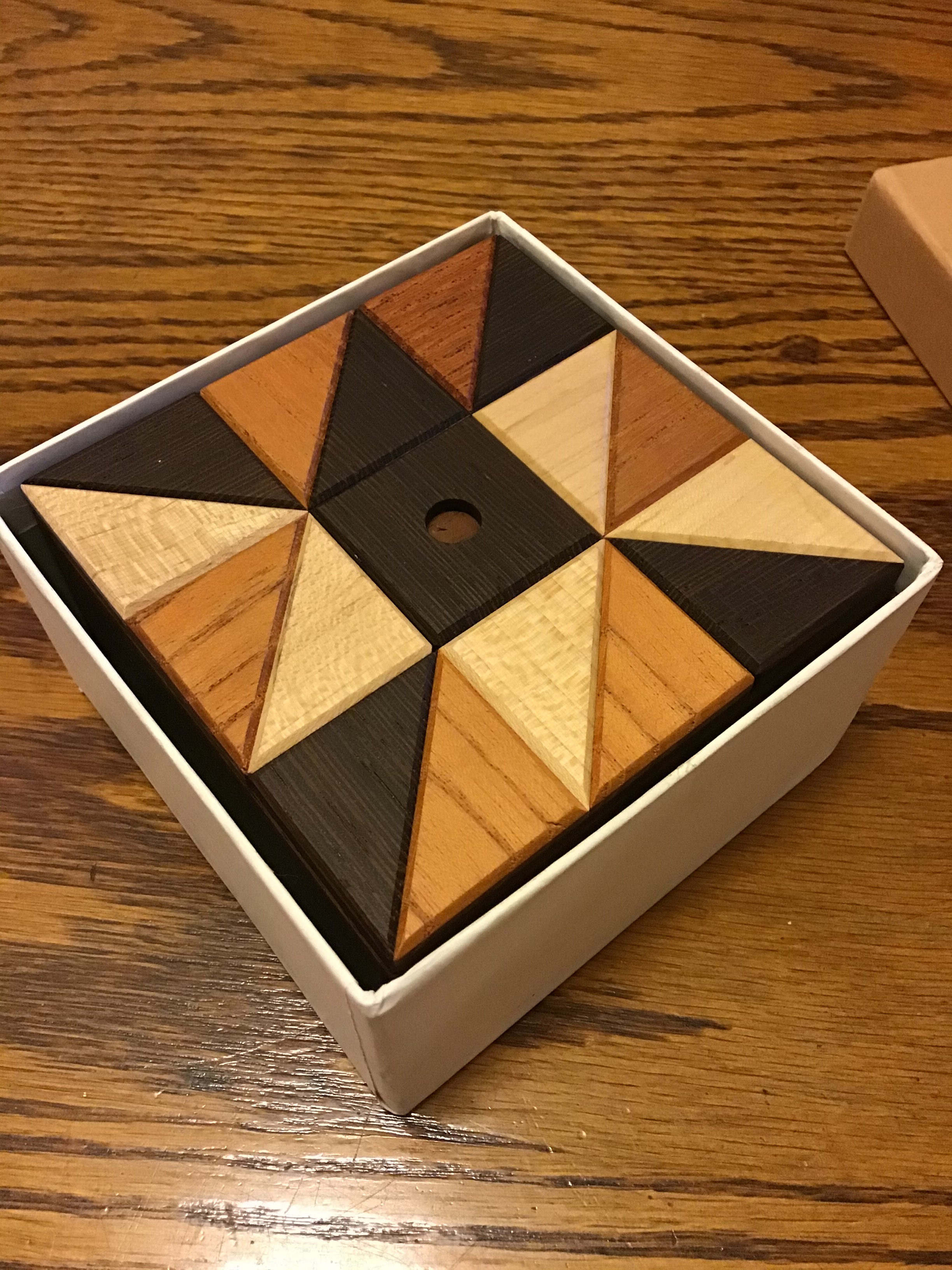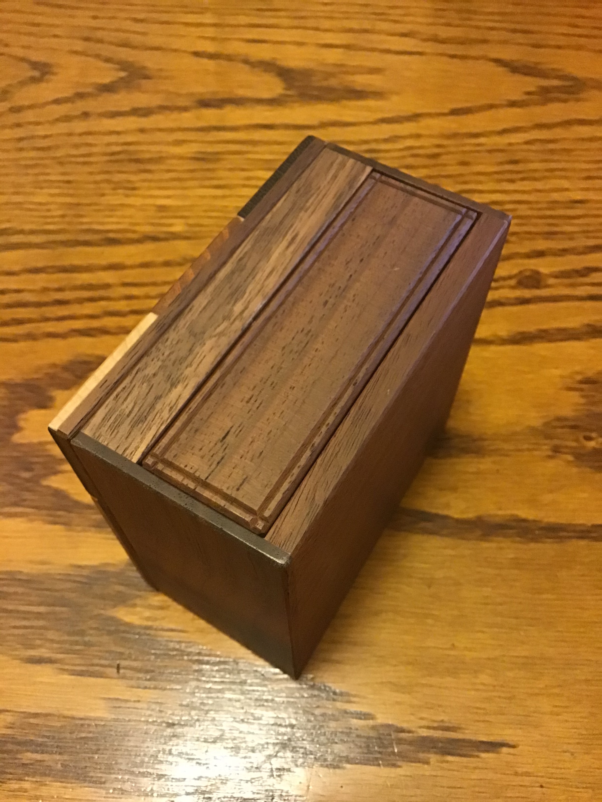 A beautiful wooden puzzle box, made with a variety of lovely woods, created by a master of the art in the spiritual home of puzzle-boxes: Hakone, Japan.