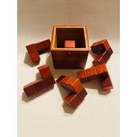 “This seemingly easy packing puzzle from Laszlo is really fun to watch someone solve. Especially as they examine the pieces and then have to throw logic out the window. Five similar pieces pack into the box with one very small obstruction. Nothing to it right! Give it a try.”