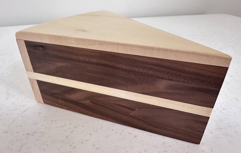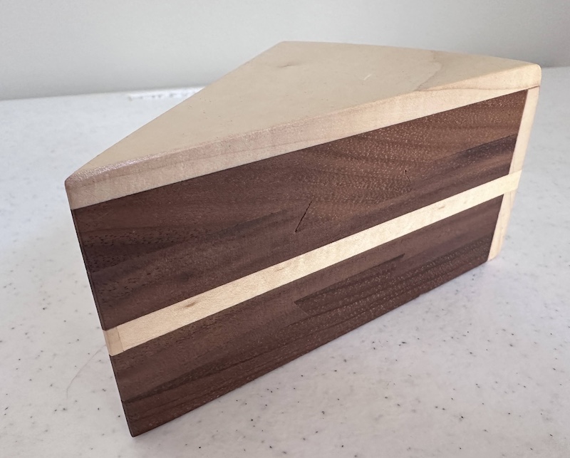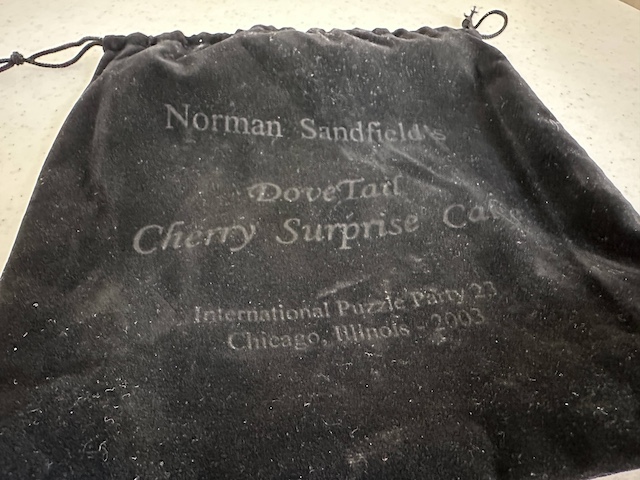 If you look carefully at the sides, you can make out a couple of dovetails which should give you a clue as to how things might come apart, but this chap has a few nasty surprises for puzzlers – there are a few distinct phases to getting into the final secret compartment to discover the hidden cherry surprise (cute touch!) – but not only that, there are some rather unusual discoveries long the way – and there’s definitely a sequential discovery aspect to it all as well… a lot of the old tricks, and some news ones are used in there – it’s not just beautiful, it is a seriously testing puzzle!