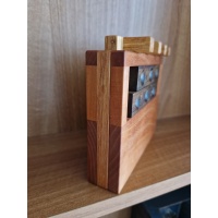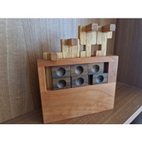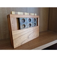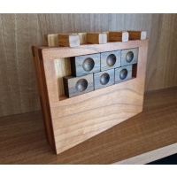This is a beautiful Canarywood, Walnut and I think Maple sequential movement or n-ary puzzle is in perfect condition. Designed by Goh Pit Khiam and built by Tom Lensch.
