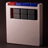 NumLock is an n-ary puzzle with a great solving flow, and I found it was a great way to start to understand what was going on with n-ary designs. An interesting feature of this multi-slider setup is that it can be configured with keys of any odd base (ternary, quinary, etc); I decided to take advantage of this and produce a set of both ternary and quinary keys, which allows you to configure the puzzle to require anywhere between 143 (all ternary keys) to 599 (all quinary keys) moves to free the first piece. The front of the case opens to allow inspection, reconfiguration, and quick resets.