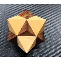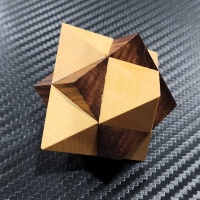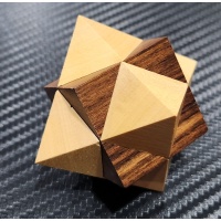 O-Hex is designed by one of the great puzzle makers... complex interlocking puzzles is this masters game. Then he made this little enigma. Cute... very cute... no solution comes with this one... but does it really need one? Beautiful puzzle, two different woods, very tight lines and tolerances.