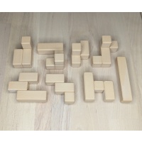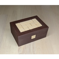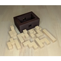 Oekanda is a packing puzzle where you fill the container (without a bottom or lid) with the eight pieces provided. But that's not all! For the puzzle to be considered solved, the pieces must remain "stuck" in the container; therefore, they must not fall out from either of the two open sides.
