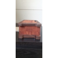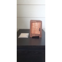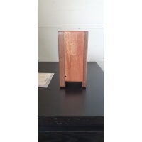 Oleg's Wardrobe is a sequential discovery puzzle with more than 15 steps to find and release the prize. It's made from black walnut and African striped mahogany. The dimensions are 5" x 7" x 3.5".
